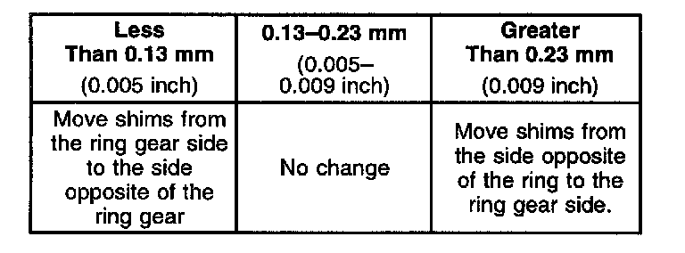 IMPORTANT: The reduction in the shim pack on one side must be equal to the increase in the shim pack on the other side.