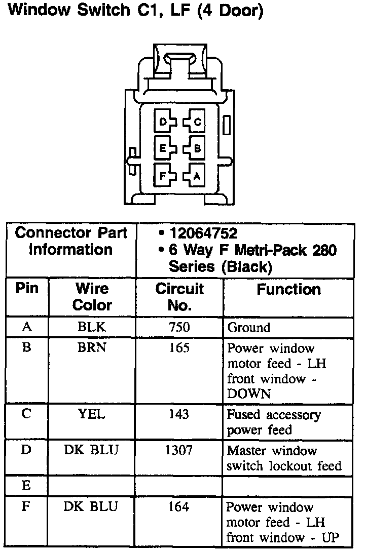 Window Switch, LF (4 Door): C1: