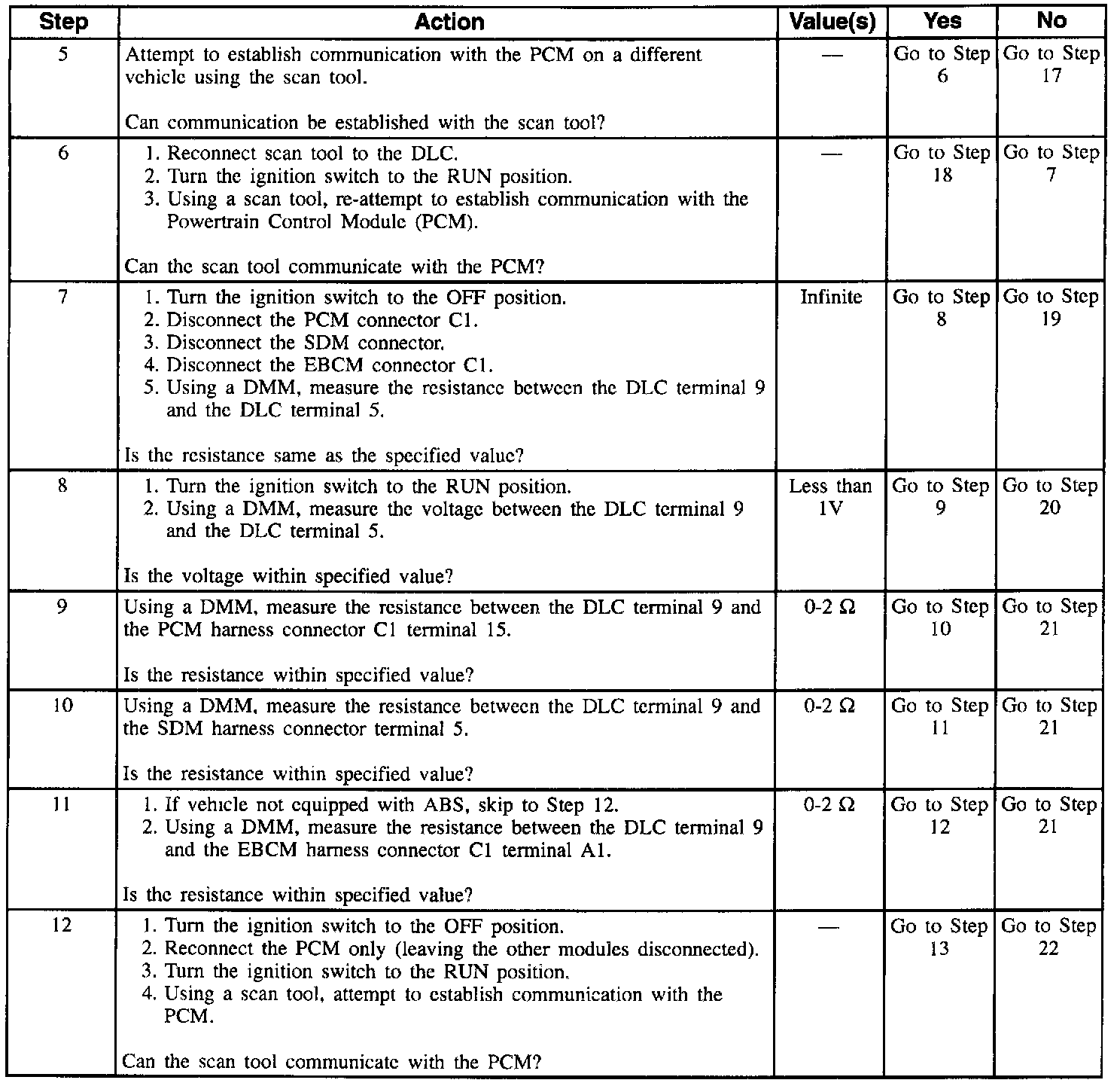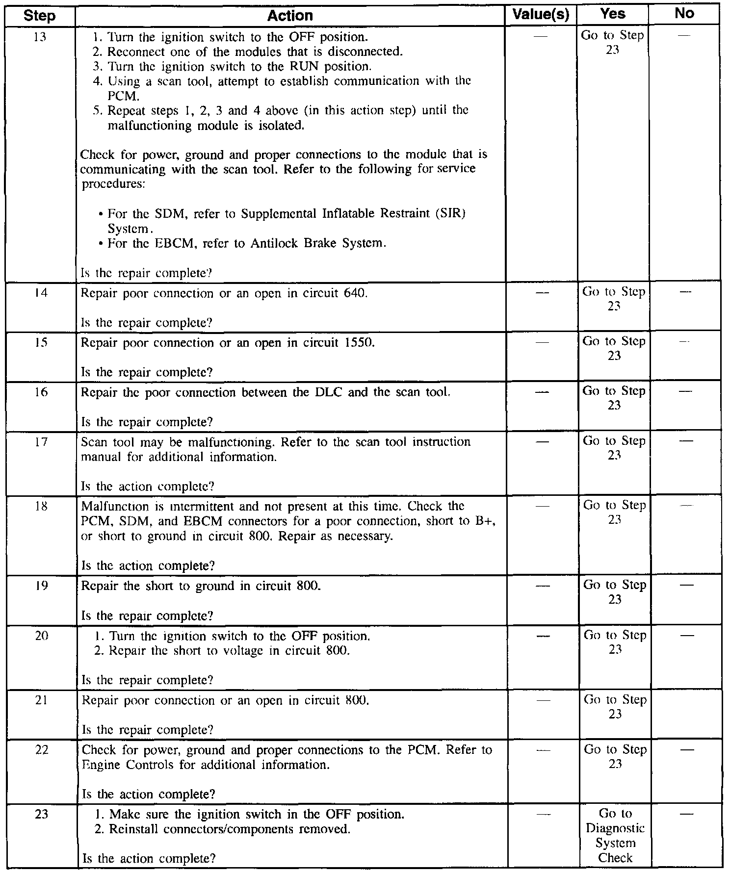 Table 1 Scan Tool Doesn't Communicate W/The UART Serial Data Link (Part 3 Of 3):