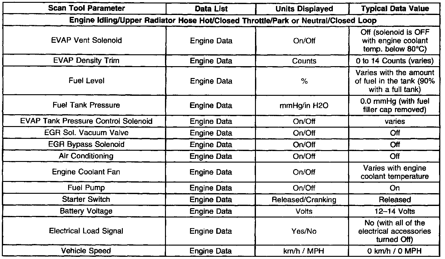The Engine Scan Tool Data List contains all engine related parameters that are available on the scan tool. The list is arranged in the order shown on the scan tool.