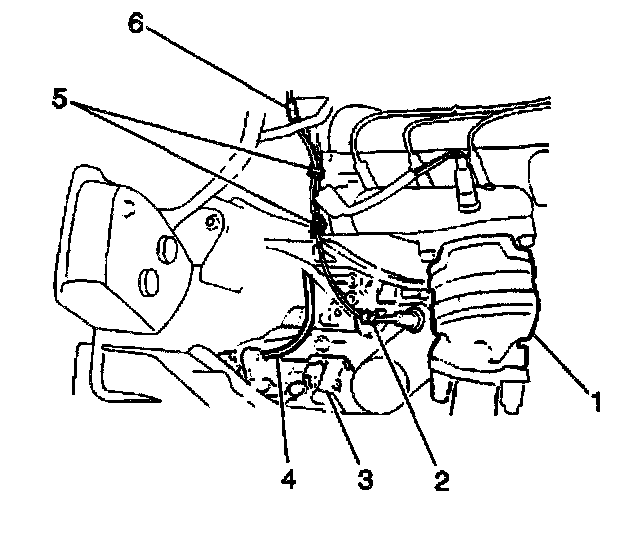 10. Remove the 4 bolts (3,4,5) and the compressor mounting bracket from the vehicle.