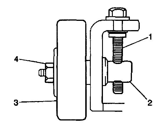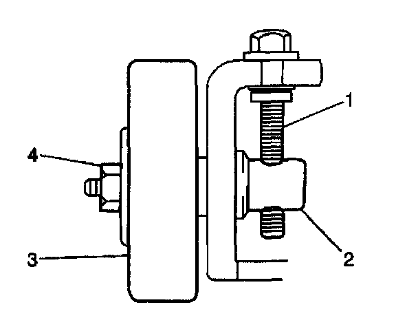 5. Loosen the idler pulley locknut (4).