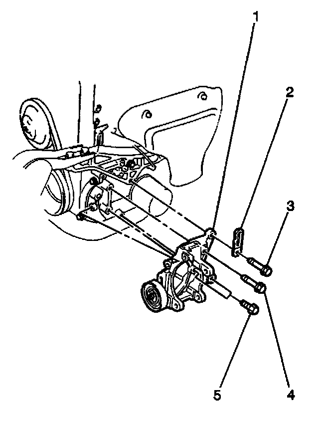 2. Secure the compressor bracket with 4 bolts (3,4,5). Tighten the bolts in the following sequence: