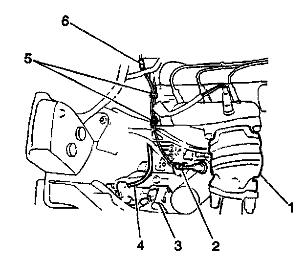 1. Install the compressor to the compressor bracket. Secure the compressor with 3 bolts (1,4,5). Tighten the bolts in the following sequence: