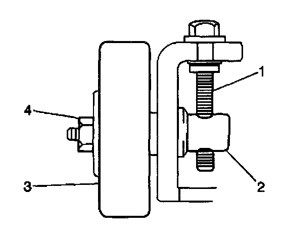7. Remove the compressor drive belt (2) from the clutch pulley.