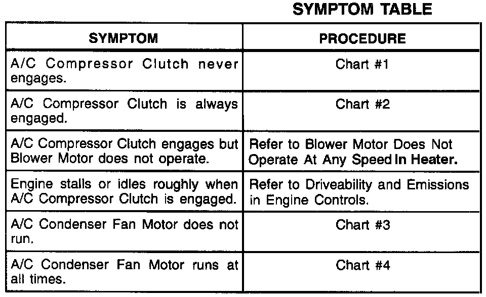 Symptom Table: