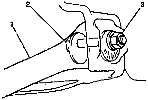 1. Adjust the rear toe by loosening/tightening both body-side (cam) control rod nuts (3) and bolts (2).