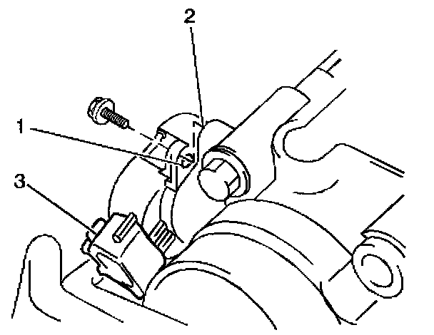 1. Align the TP sensor (3) to the throttle body with the TP sensor's upper screw hole (1) slightly ahead of the hole on the throttle body (2). This will properly engage the throttle lever tab with the TP sensor movement.