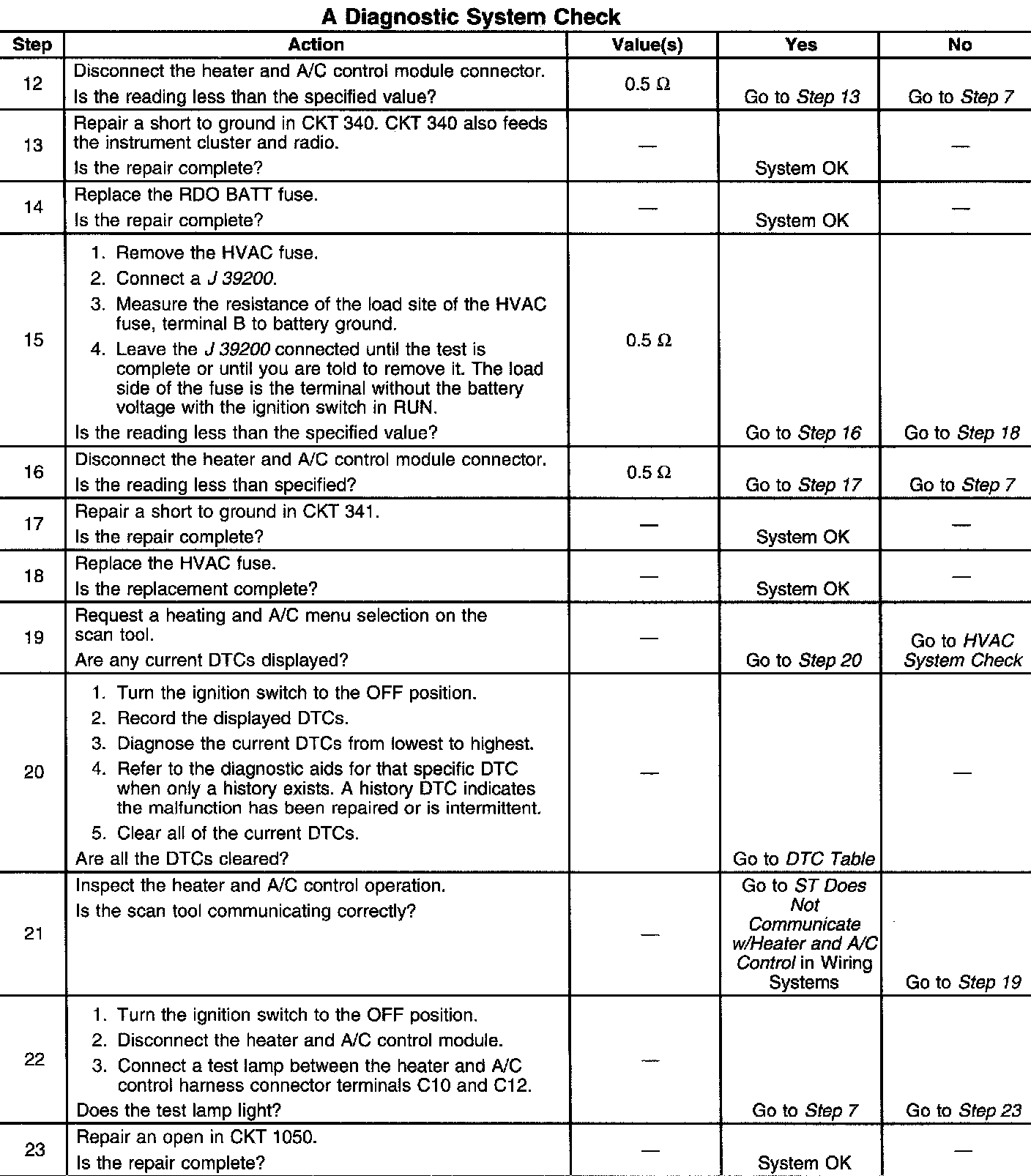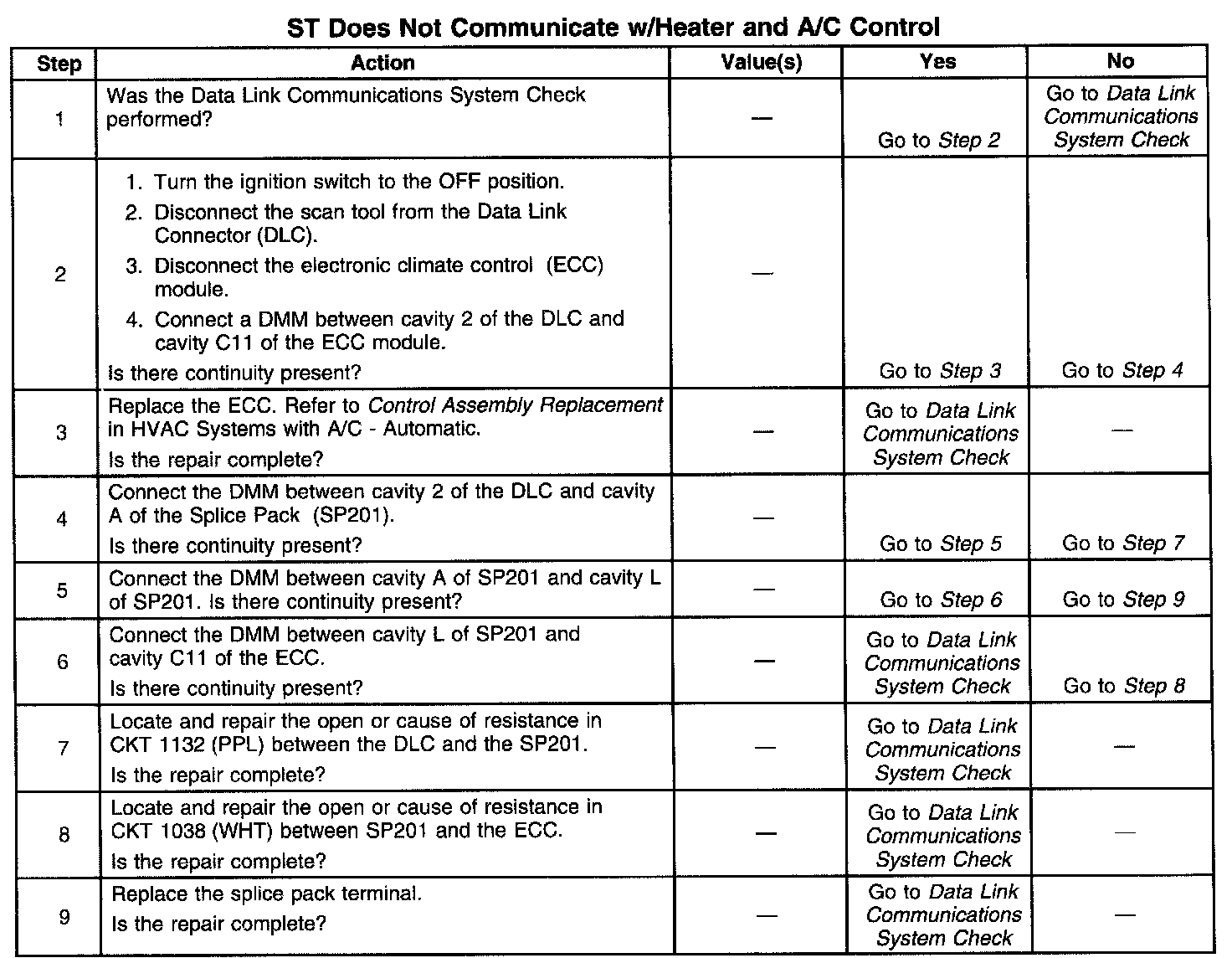 ST Does Not Communicate W/Heater and A/C Controls