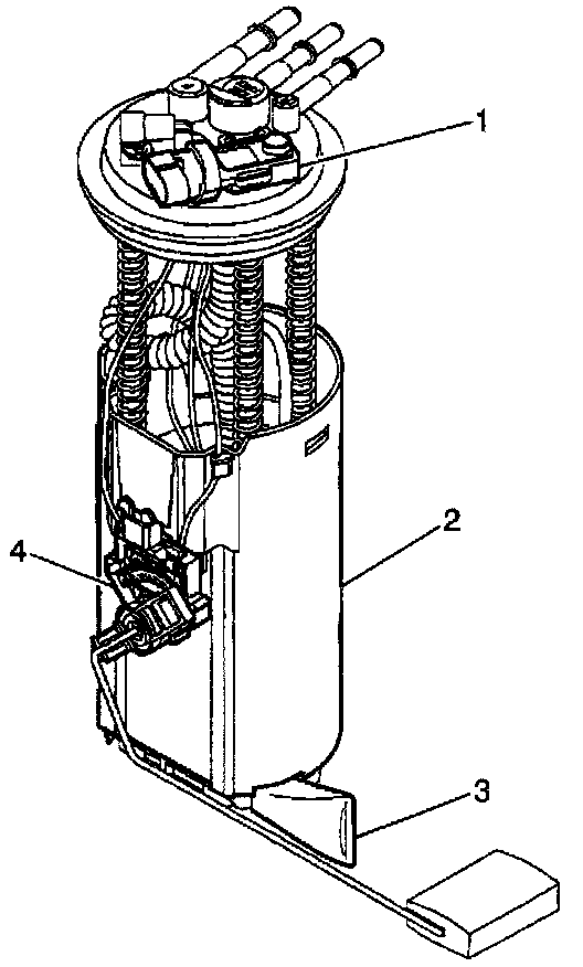 The fuel sensor (4) is attached to the modular fuel sender. The resistance of the fuel level sensor changes with the fuel by means of a rheostat. As the position of the float varies with the fuel level, the rheostat produces a variable resistance. The fuel gauge converts this variable resistance into the fuel level reading displayed on the instrument panel.