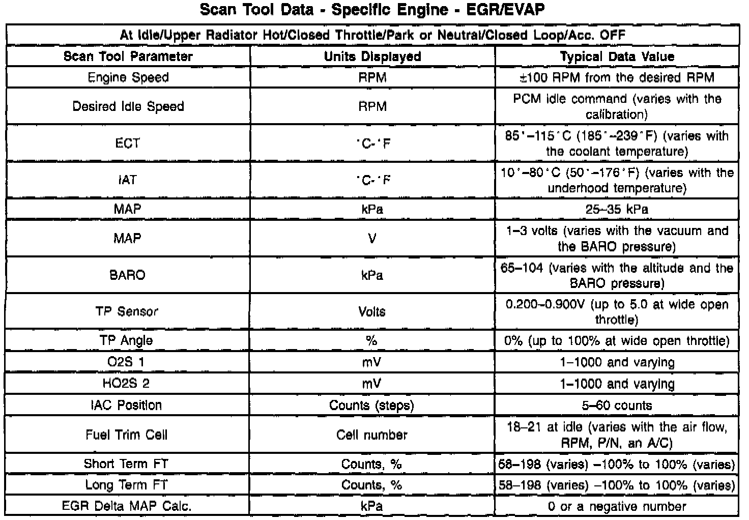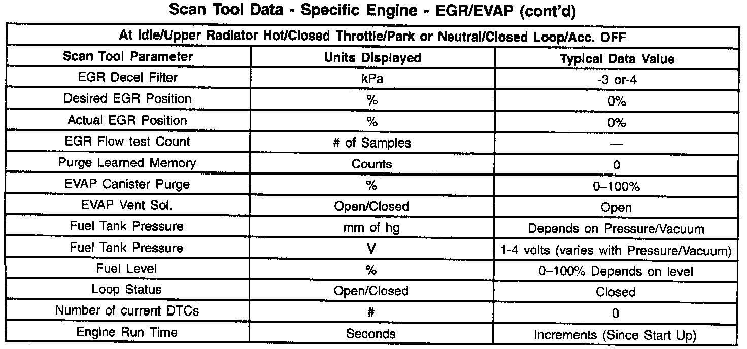 EGR/EVAP Data