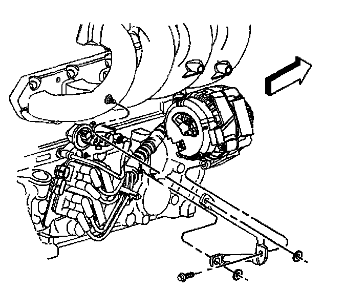 - Remove the generator brace to the intake manifold nut.