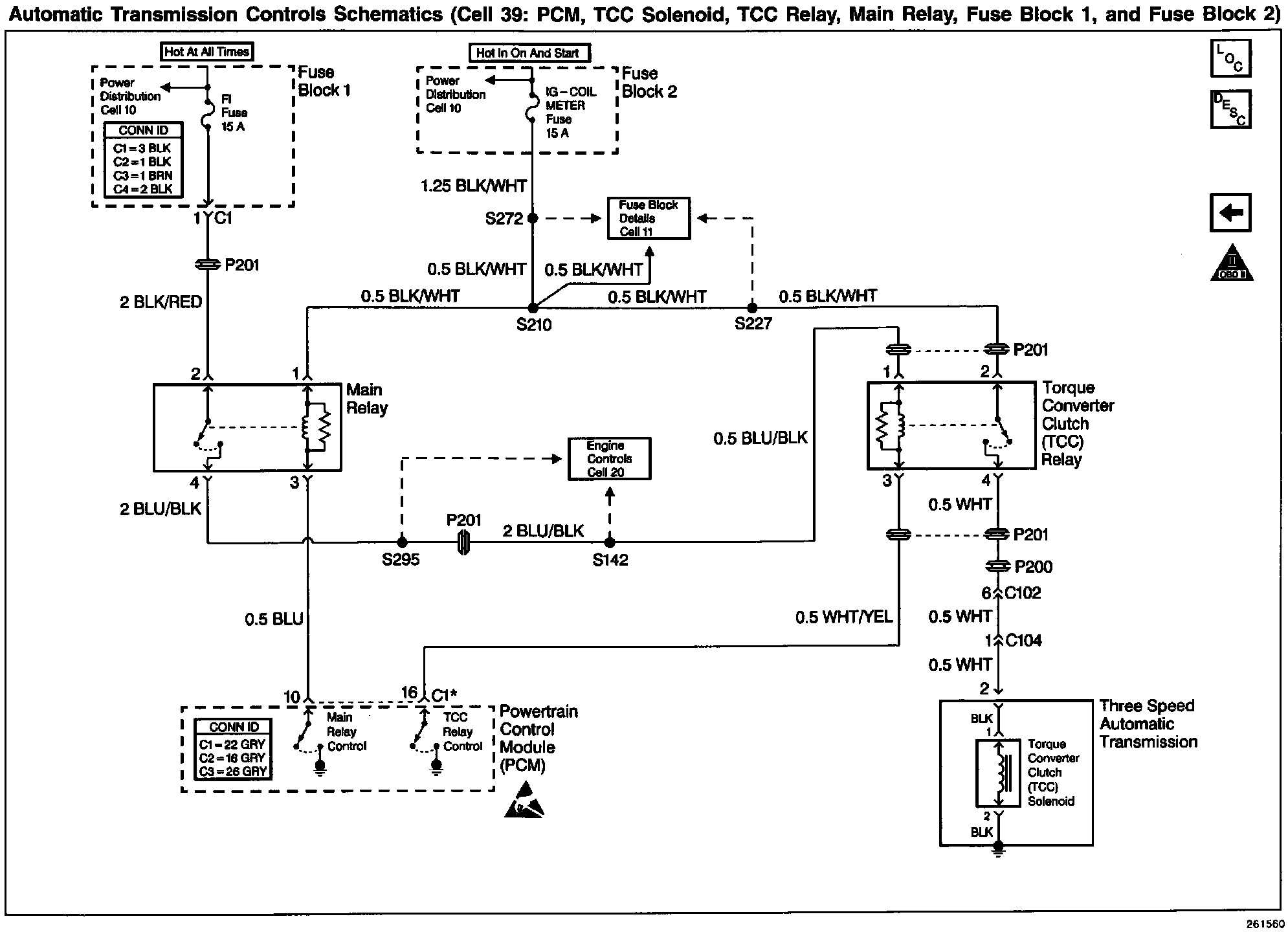 PCM, TCC SOL.,TCC Relay, Main Relay, Fuse Block 1 & 2