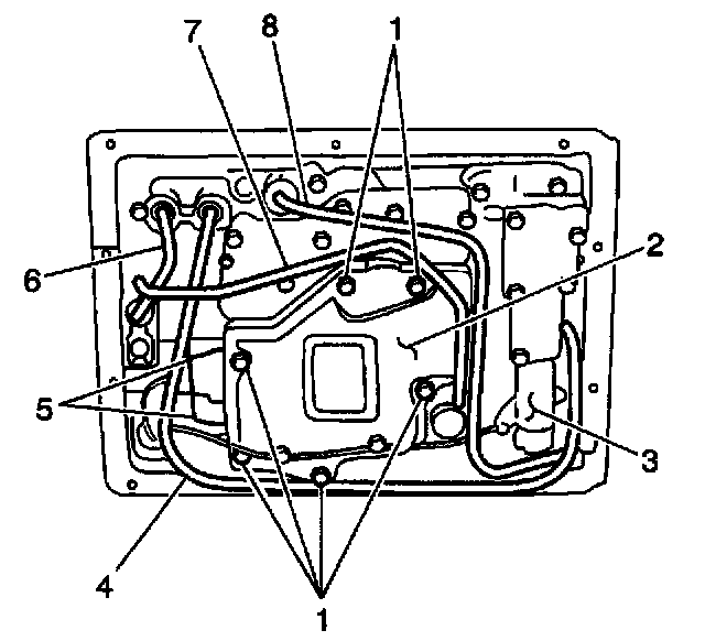 10. Remove the four fluid pipes in the following order: 7, 6, 4 and then 8.