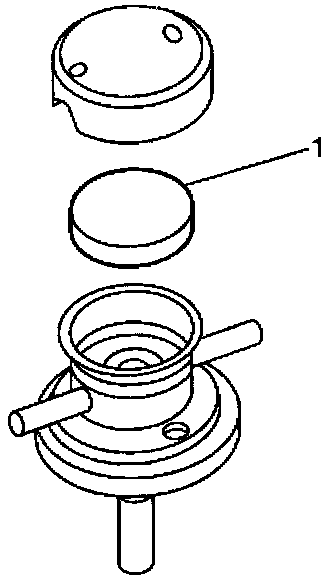 4. Blow air into the opposite tube (2). Air should pass through the filter part (1) of the pressure transducer.