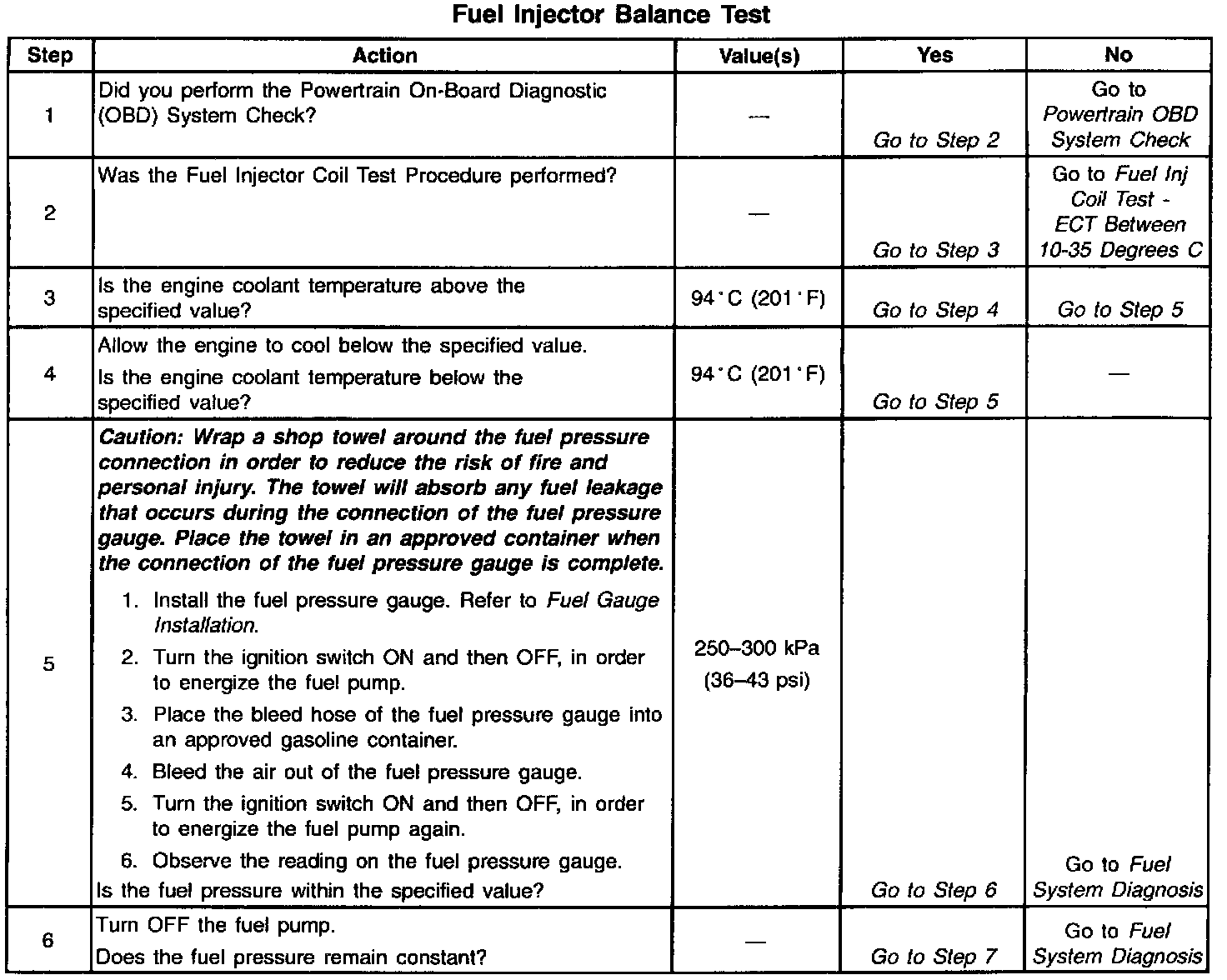 6. This step checks for a steady fuel pressure reading. If the fuel pressure reading indicated is not steady, refer to Fuel System Diagnosis. System Diagnosis - Fuel System
