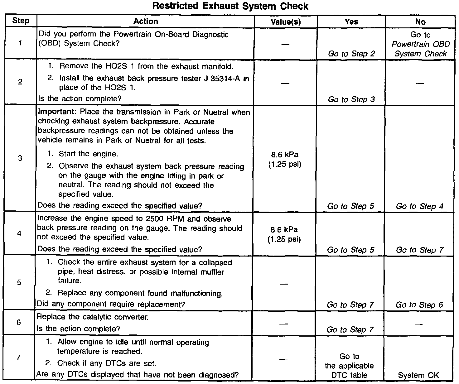 System Check - Restricted Exhaust