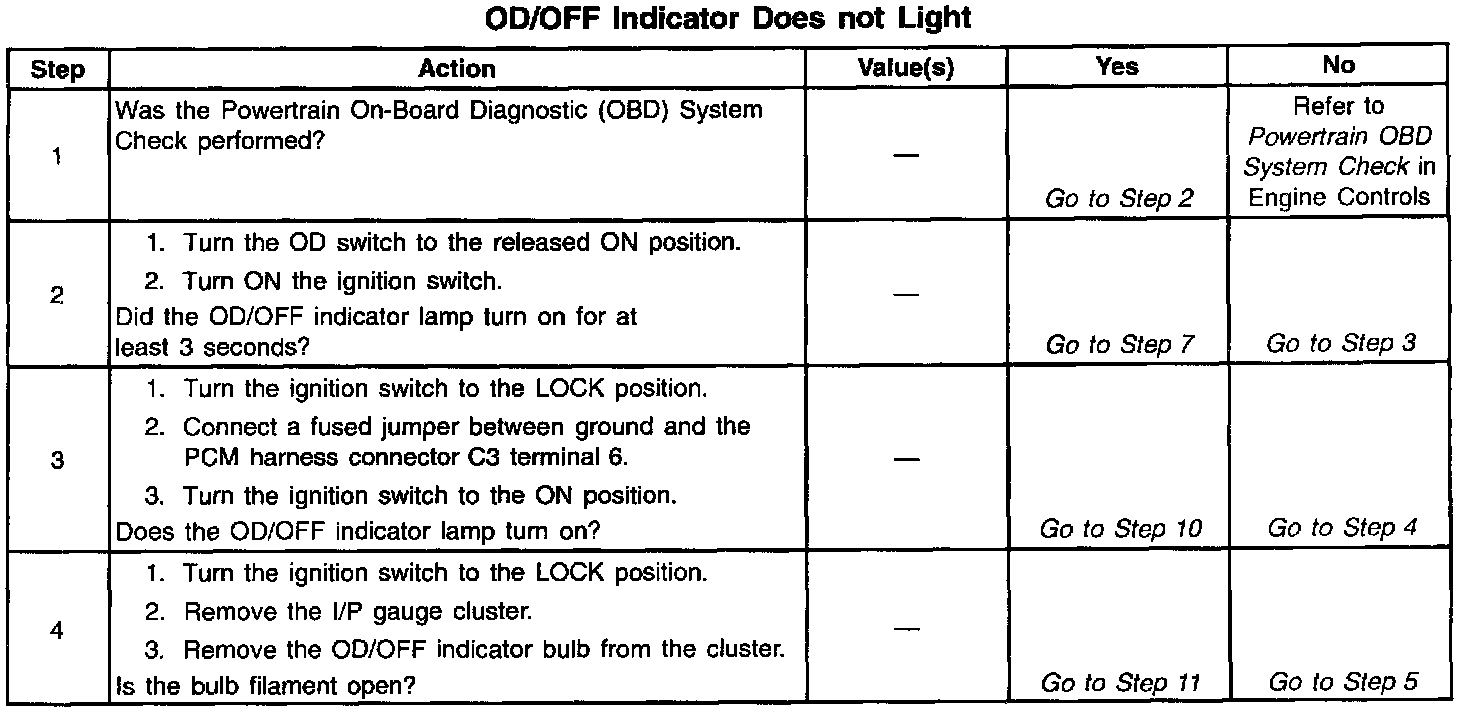 18. This step tests for proper operation of the OD/OFF indicator.