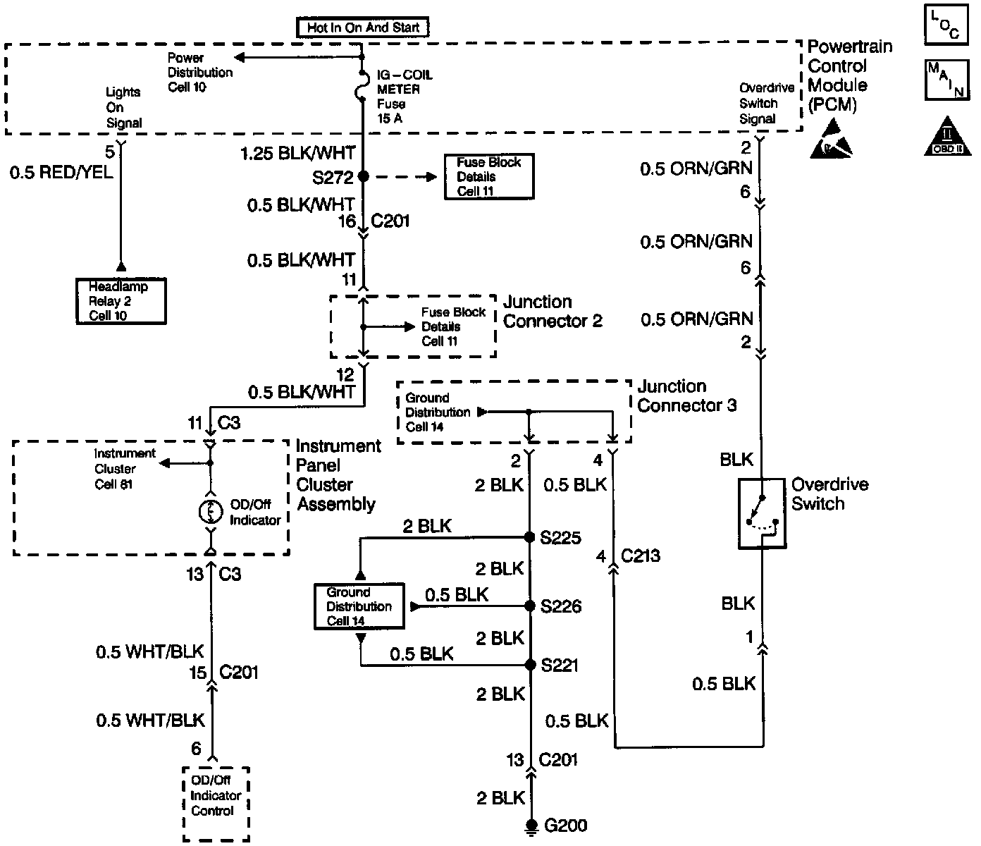 8. This step tests for a reduced ground (G200) to the OD switch.