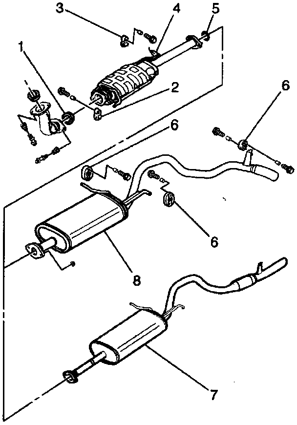 6. Tighten the TWC-to-muffler/tail pipe assembly bolts and nuts to 50 Nm (37 lb ft).