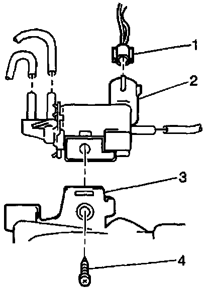3. Remove the one screw (4) and the EGR bypass valve (2) from the bracket (3).