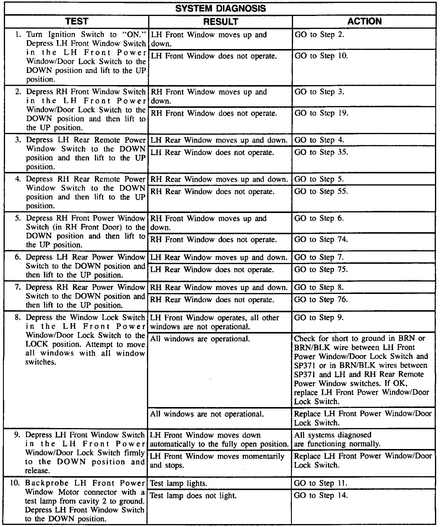 System Diagnosis - Power Windows