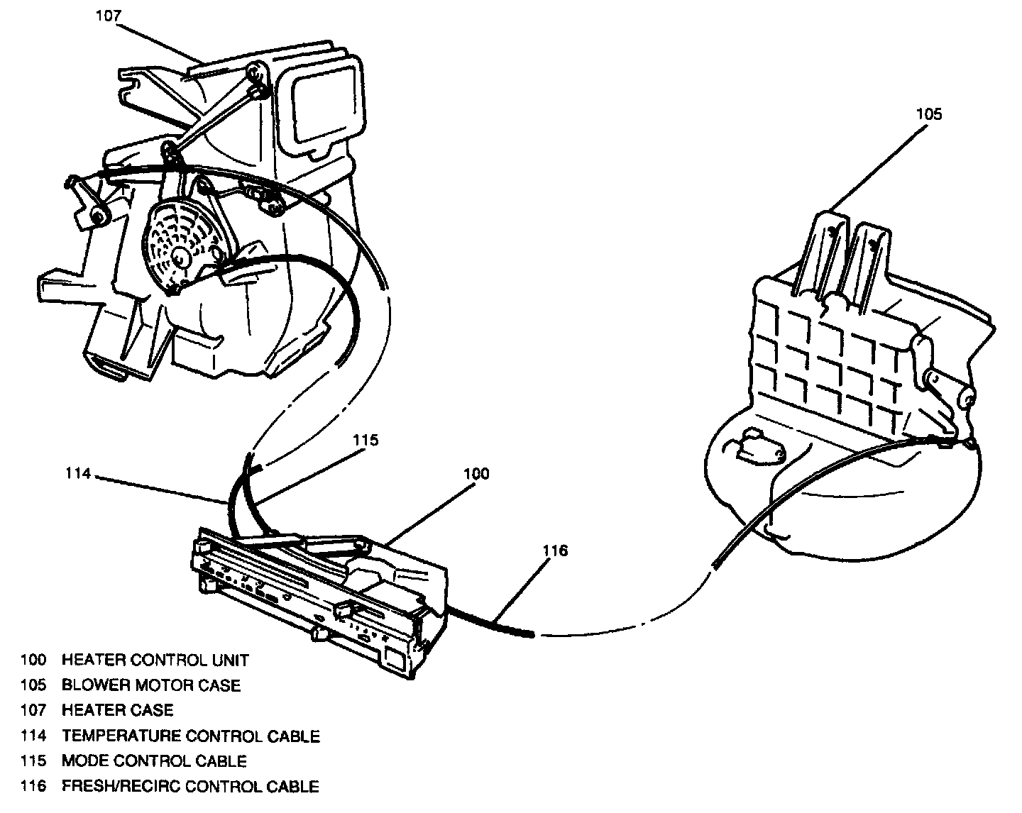 3. Position fresh/recirc control cable in vehicle; route cable as previously noted.