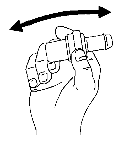 6. Shake the PCV valve while listening for the rattle of the needle inside. Replace the PCV valve if the valve does not rattle.