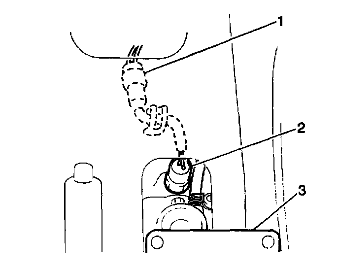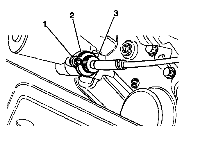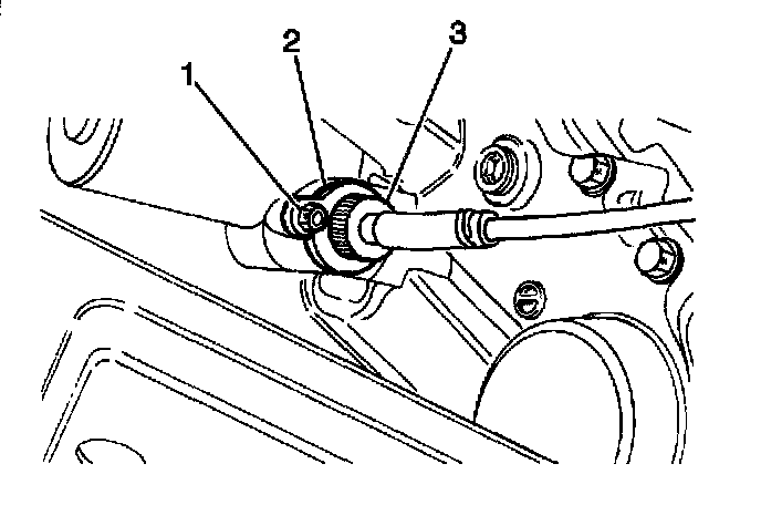 12. Install the speedometer cable clip (3) and the ground wire (1) to the torque stopper housing. Secure with one bolt.