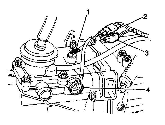 9. Remove the four-wheel drive low switch electrical connector (3) from the four-wheel drive low switch (4) (if equipped).