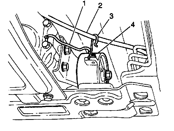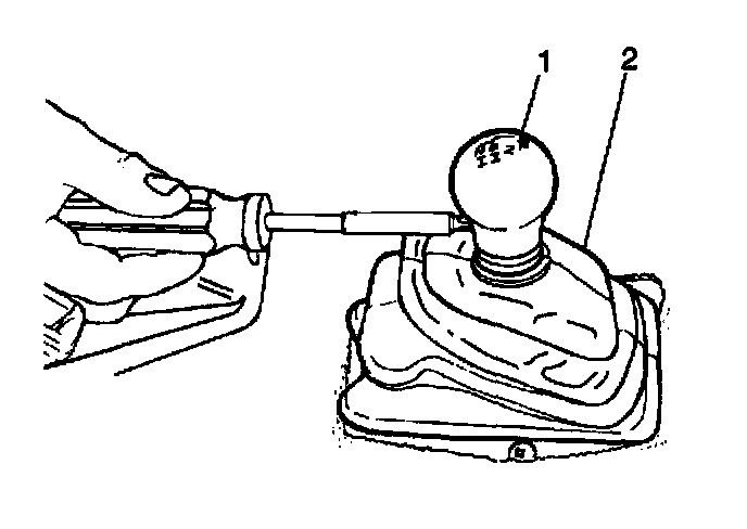 7. Remove the gearshift control lever (1) from the gearshift lever case (2) by pushing down on the gearshift control lever pivot (3) and turning counterclockwise 90 degrees (1/4 turn) and lifting up (if equipped).