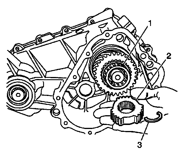 21. Install the reduction hub C-clip (3) onto the rear output shaft.