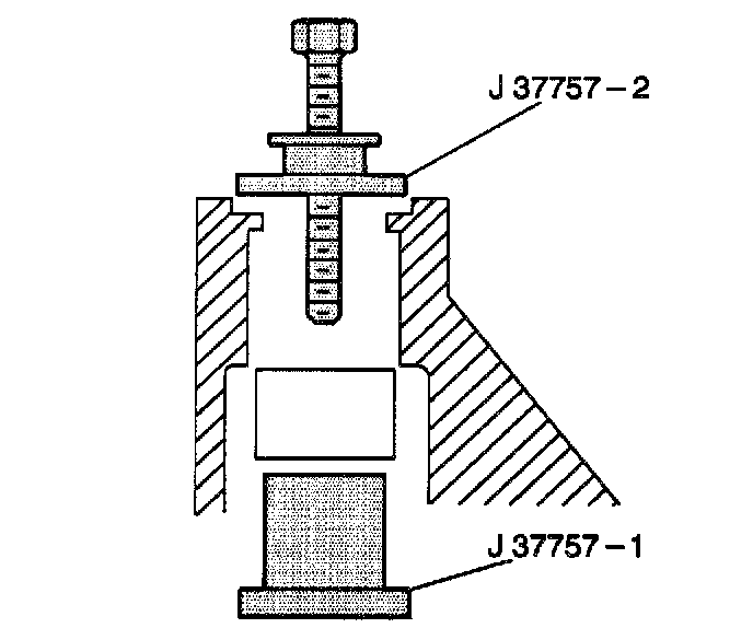 13. Use the J 37757 in order to install the front output shaft needle bearing into the center case.
