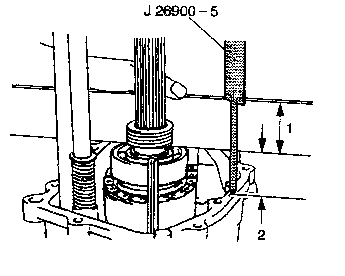 51. Use the J 26900-5 and a straightedge in order to measure the height of the rear output shaft rear bearing on the rear output shaft: