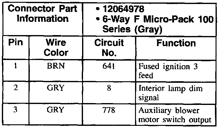 Auxiliary Heater-A/C Control C1 (Part 2 Of 2):