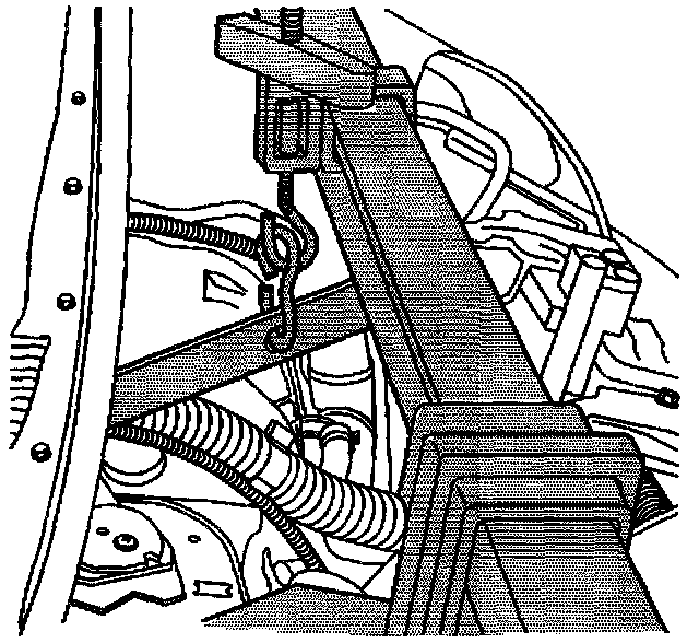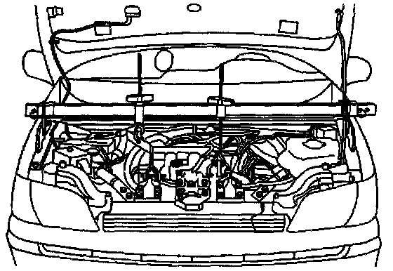 CAUTION: THE UTILITY STRAPS MUST BE INSTALLED IN ORDER TO PREVENT FORWARD MOVEMENT OF THE POWERTRAIN. IF THE UTILITY STRAPS ARE NOT INSTALLED, THE POWERTRAIN WILL MOVE WHICH MAY CAUSE PERSONAL INJURY AND VEHICLE DAMAGE.