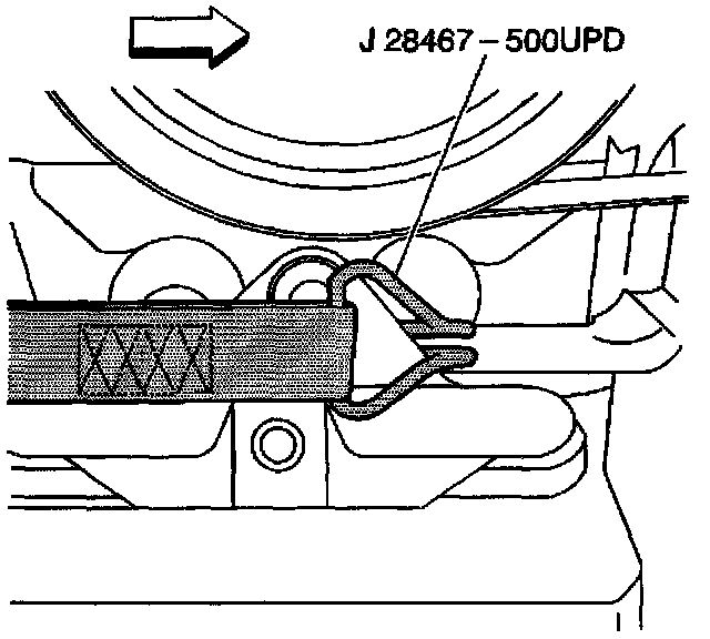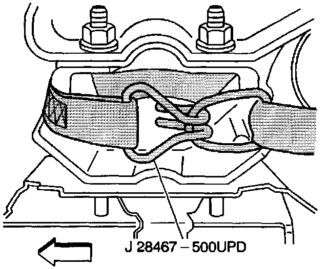 17. Tighten both of the J28467-500UPD utility straps in order to prevent forward movement of the powertrain.