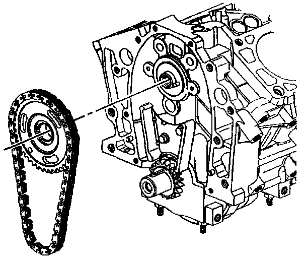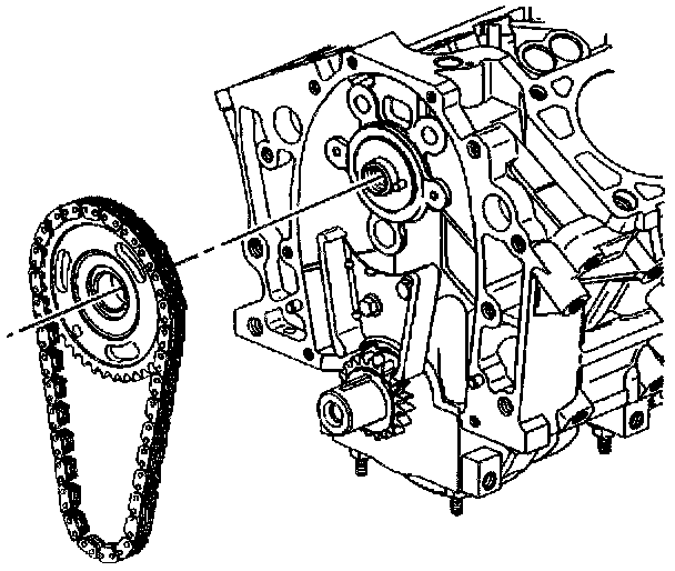 14. Coat the crankshaft and camshaft sprocket with engine oil.