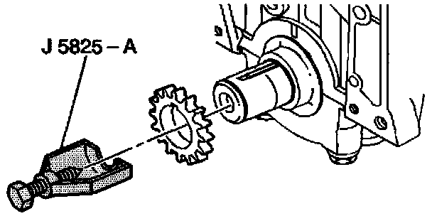 6. Use the J 5825-A in order to remove the crankshaft sprocket.