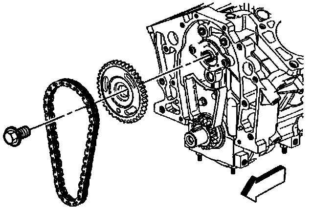 13. Draw the camshaft sprocket onto the camshaft using the mounting bolt.