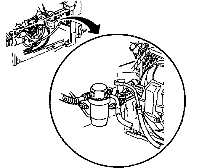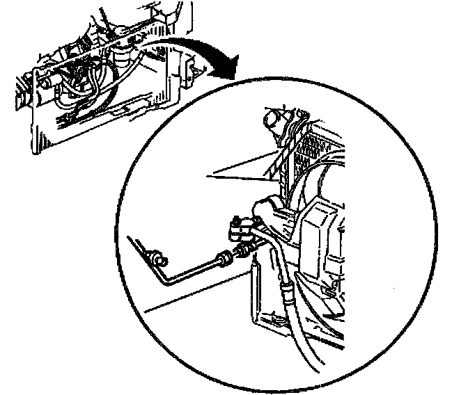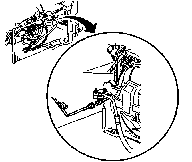 4. Disconnect the evaporator line at the condenser. Discard the O-ring seal and cap or tape the line and condenser.