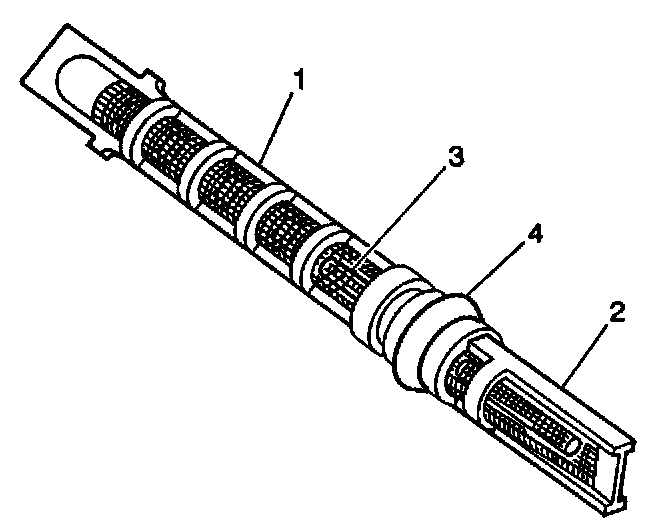 ^ Filter screen (1,2) torn, damaged or plugged with fine gritty material; replace tube