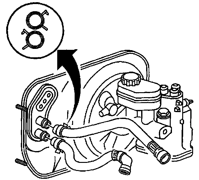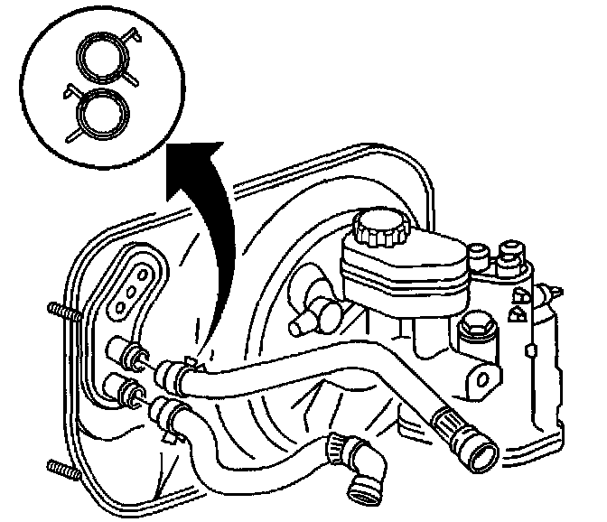 15. Connect both of the heater hoses and the clamps to the heater core using the J 38185 positioning the clamps as indicated.