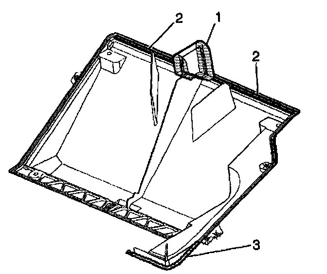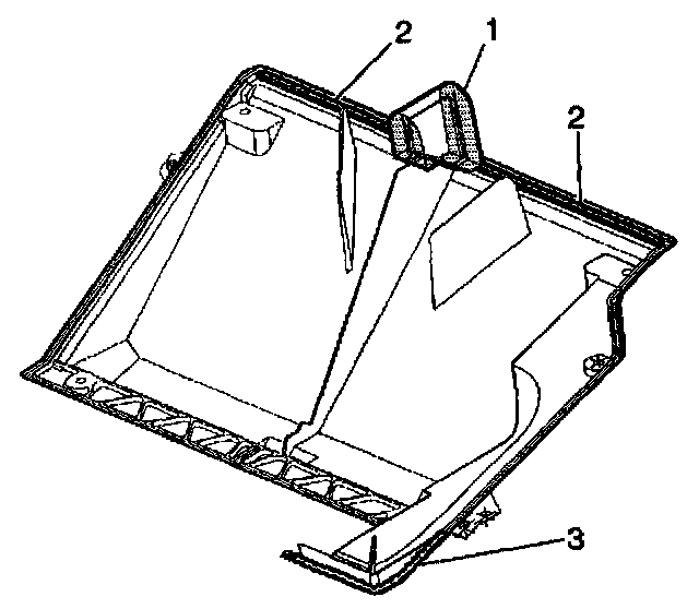 8. Remove and discard the cavity (1), whistle (2), and permagum (3) seals from the heater core cover.
