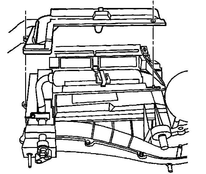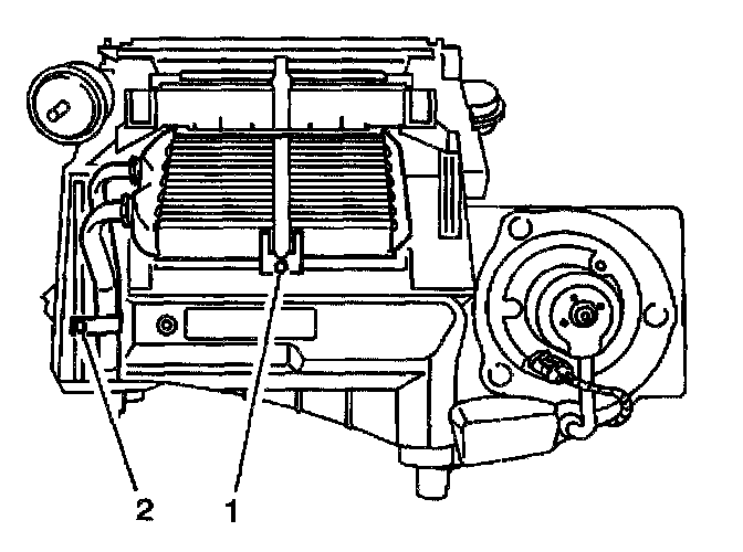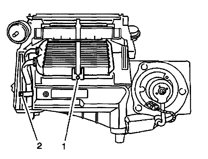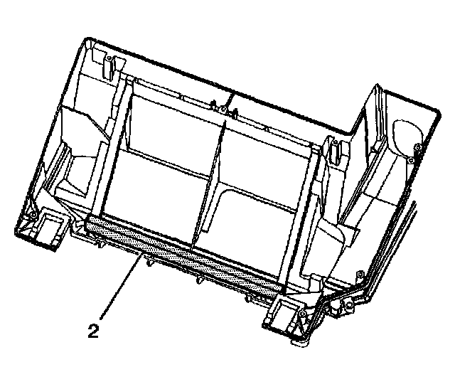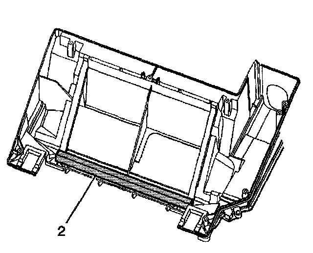 16. Remove and discard the heater core upper seal (2) from the HVAC module case.