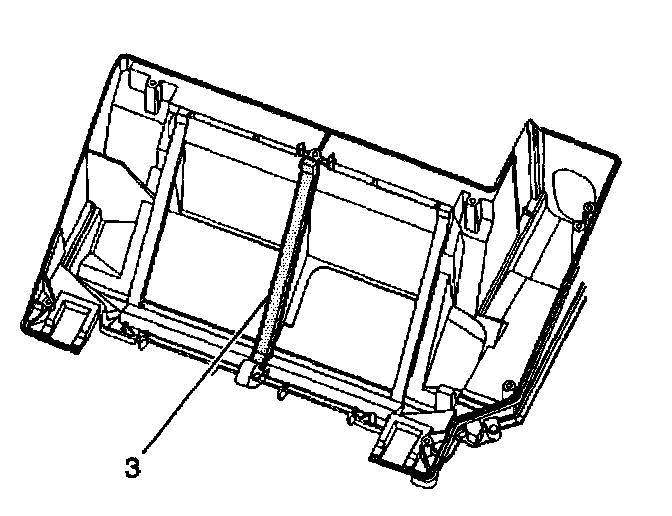 15. Remove and discard the heater core center seal (3) from the HVAC module case.