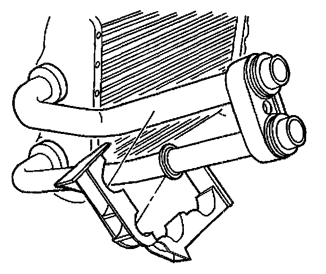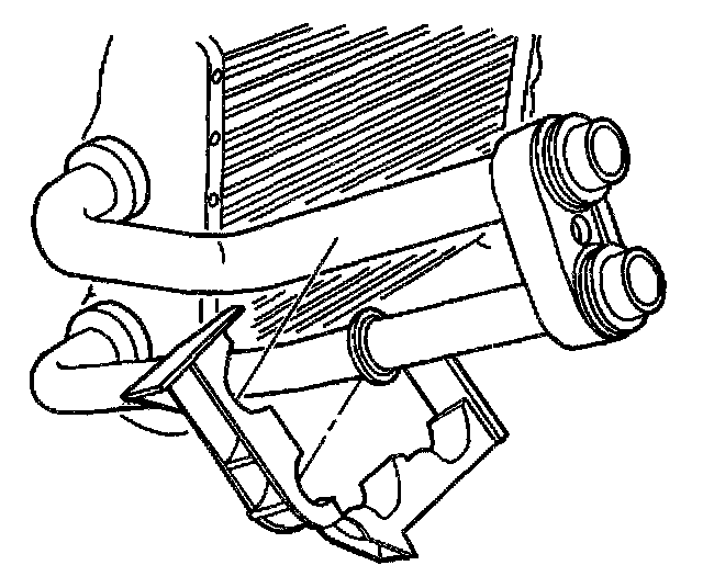 Align the depression in the clamp to the ridge on one of the heater core pipes, then close the clamp to secure.