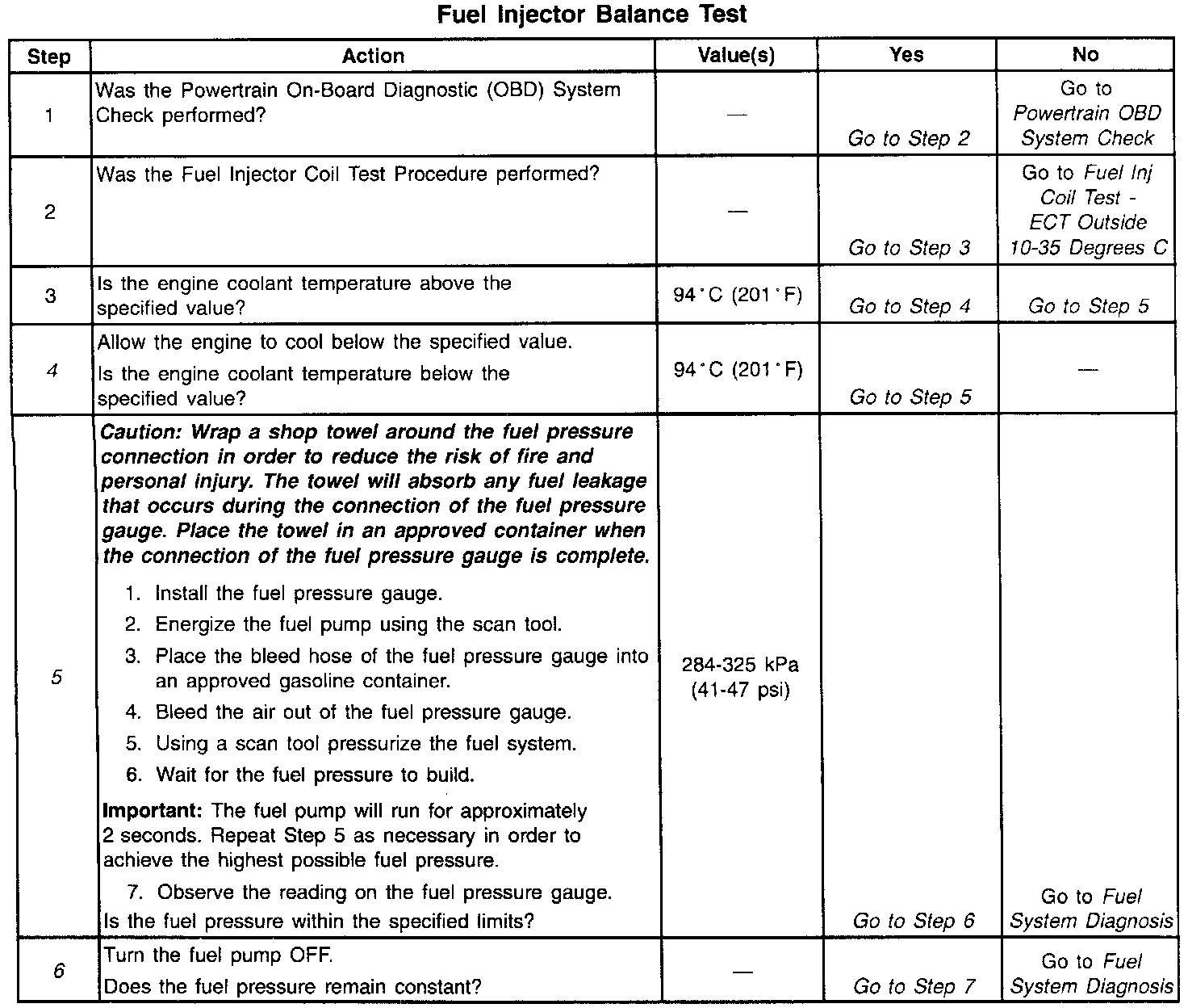 Fuel Injector Balance Test