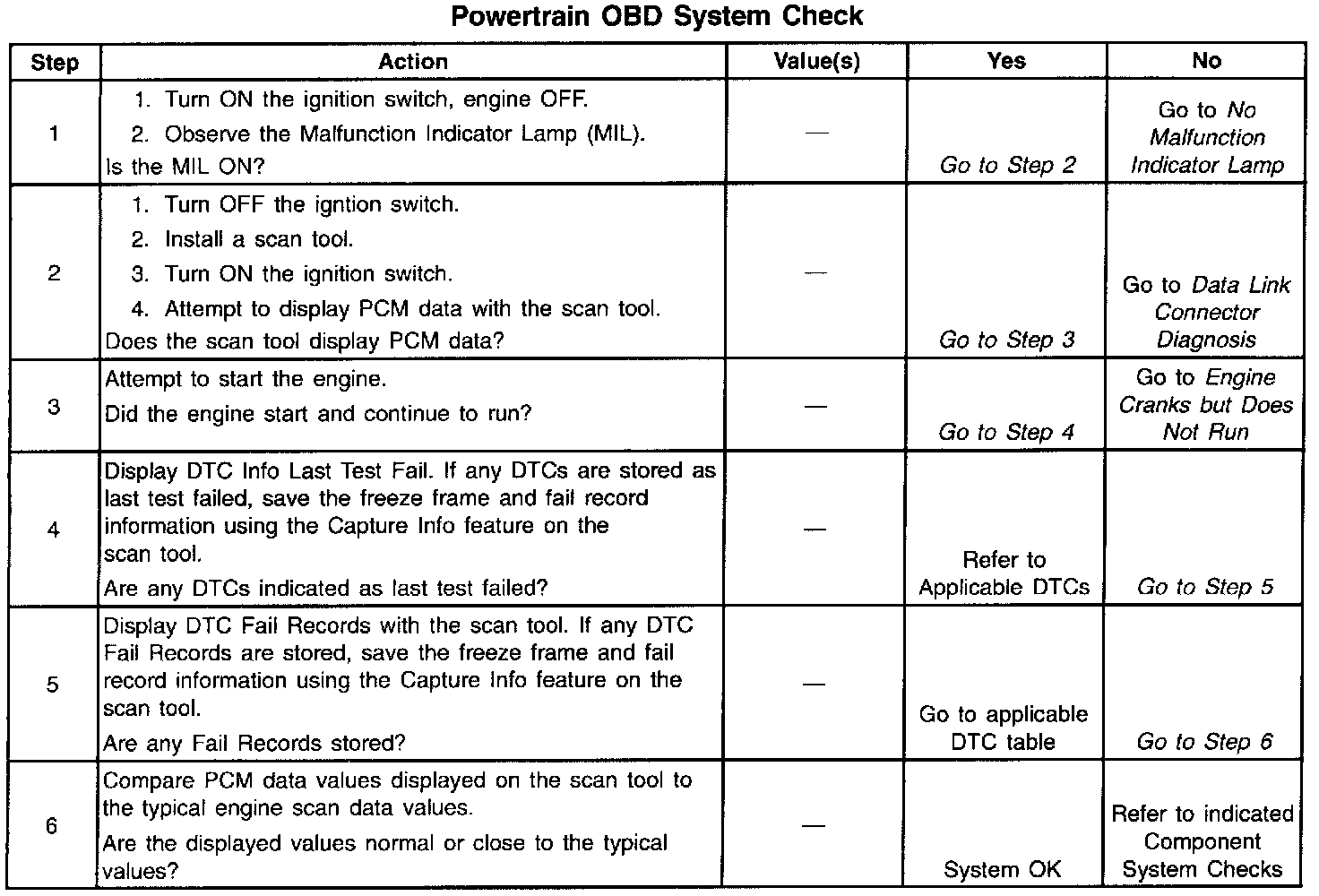 - Powertrain/On-Board Diagnostic System Check