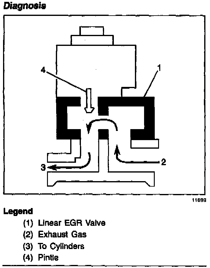 EGR flow diagnosis is included in the DTC P0401 diagnostic table. Pintle position error diagnosis is covered in DTC P1406. If EGR diagnostic trouble codes P0401 and/or P1406 are encountered, refer to Computers and Control Systems / System Diagnosis. Testing and Inspection